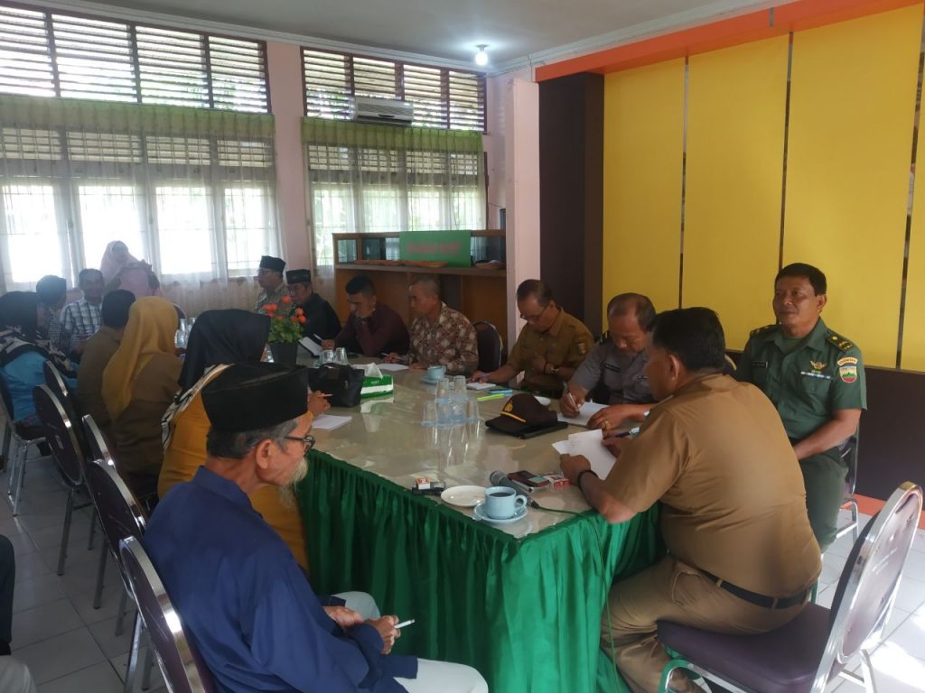 Kuansing, Indonesia–Bertempat di Ruang Paten, Kantor Kecamatan Gunung Toar, Kabupaten Kuantan Singingi (Kuansing), Provinsi Riau, Senin (4/11-2019), Danpos Koramil Pelda Doli Mulyono bersama Camat Gunung Toar Delpides Gusni dan Ipda Presli, Koordinator Pertanian Rina Danti mengikuti Rapat Koordinasi Penanaman Padi 2 Kali Setahun.