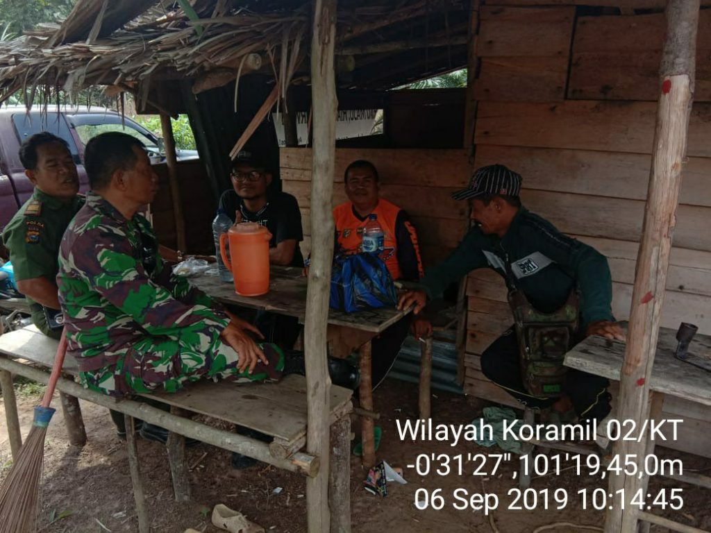 Kuansing, Indonesia–Koramil 02/KT Dim 0302/Inhu melaksanakan patroli rutin kebakaran hutan dan lahan (Karhutla) dan pengawasan serta memberikan himbauan kepada masyarakat wilayah binaan, dalam upaya mengantisipasi datangnya musim kemarau sebagai langkah antisipasi terjadinya peristiwa kebakaran hutan dan lahan di Kelurahan Simpang Tiga, Kecamatan Kuantan Tengah, Kabupaten Kuantan Singingi (Kuansing), Provinsi Riau, Jumat (6/9-2019).
