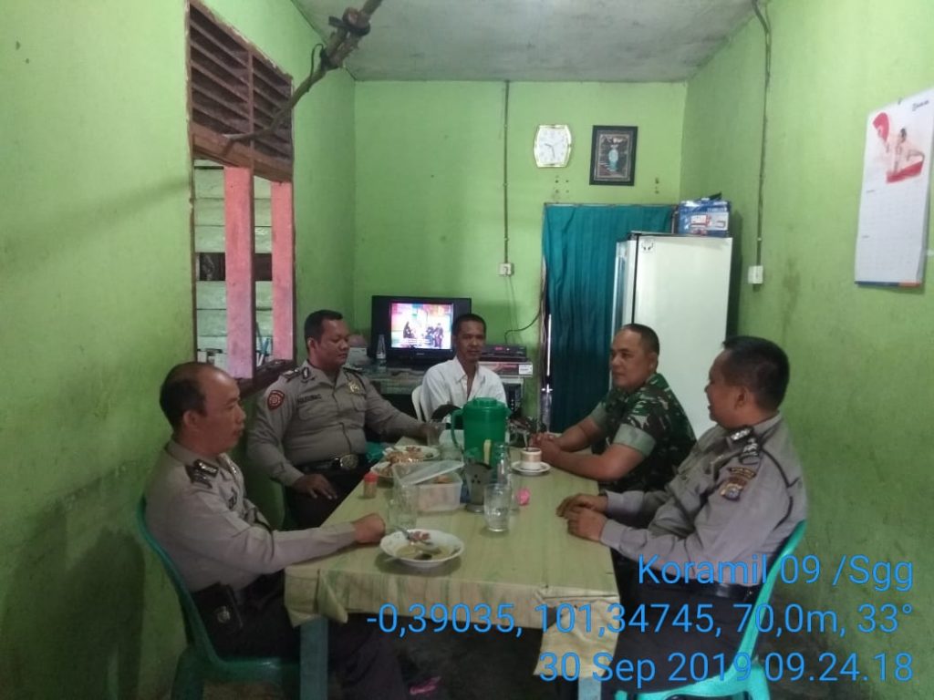 Anggota Koramil 09/Sgg Serda Siwaidi bersama Anggota Polsek Singingi yang merupakan Babinsa dan Bhabinkamtibmas melaksanakan Komsos.