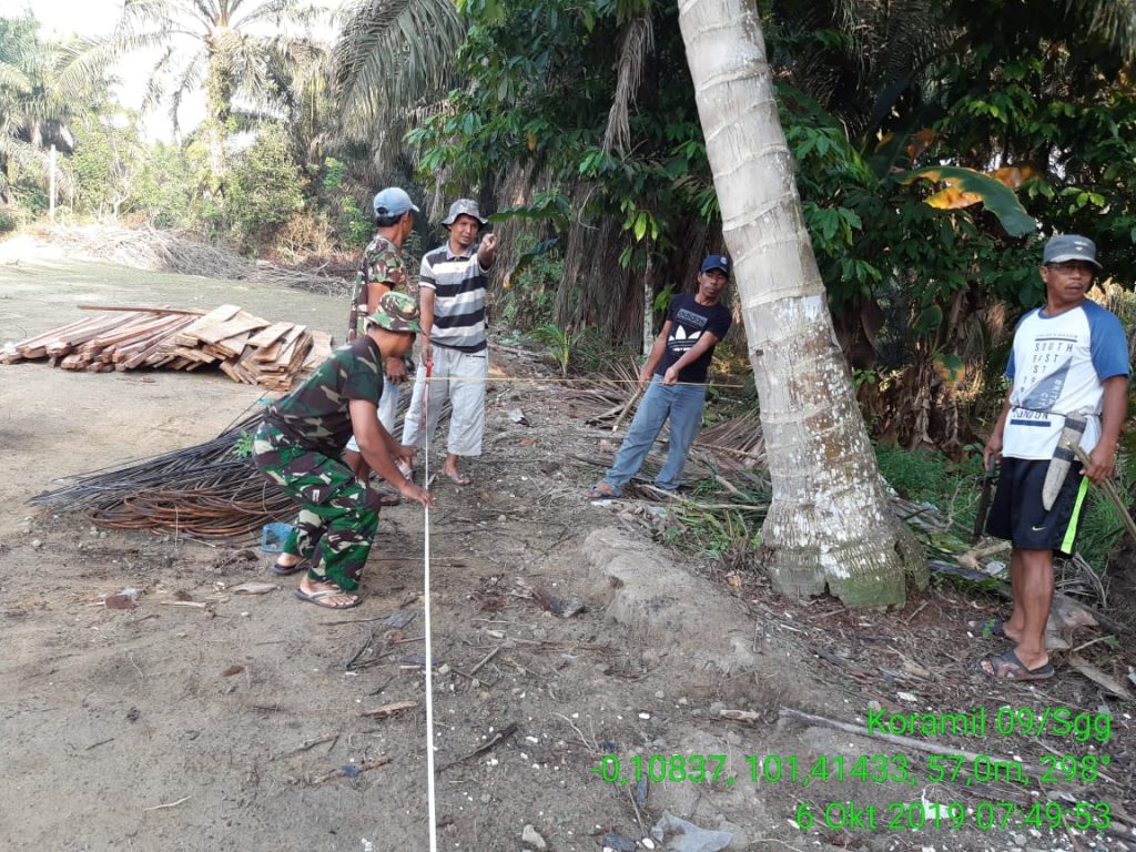 Singingi Hilir, Indonesia–Babinsa Koramil 09/Sgg Sertu Abd Hasyim melaksanakan gotong royong (Goro) pengukuran batas untuk pembuatan pondasi pembangunan TPQ/MDA Darul Ulum di Desa Suka Maju, Kecamatan Singingi Hilir, Kabupaten Kuantan Singingi (Kuansing), Provinsi Riau, Minggu (6/10-2019).