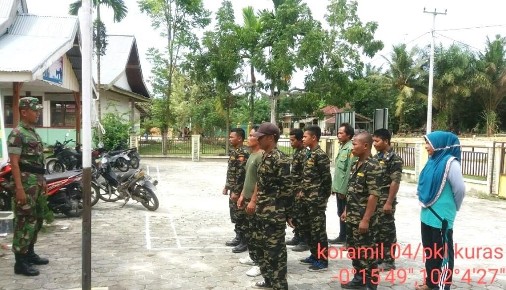 Ukui, Indonesia – Demi meningkatkan kedisiplinan dan kekompakan dalam mendukung pelaksanaan tugas-tugas di desa, Babinsa Koramil 04/Pangkalan Kuras (PK) Kodim 0313/Kpr Serma Burhanuddin memberikan wasbang dan pelatihan PBB pada anggota Linmas Desa Bagan Limau, Kecamatan Ukui, Kabupaten Pelalawan.