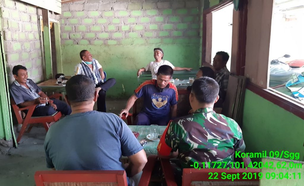 Singingi, Indonesia–Babinsa Koramil 09/Sgg Kodim 0302/Inhu Sertu Abd Hasyim melaksanakan Komunikasi Sosial (Komsos) dalam rangka Pembinaan Teritorial (Binter) di Desa Suka Maju, Kecamaan Singingi Hilir, Kabupaten Kuantan Singingi (Kuansing), Provinsi Riau, Minggu (22/09/2019).