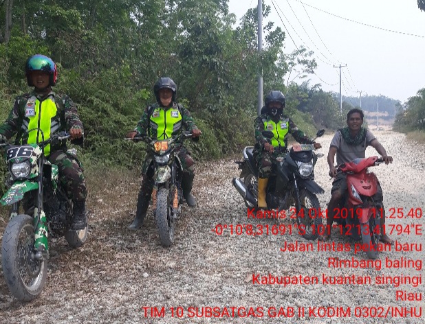 Singingi Hilir, Indonesia-Anggota Koramil 09/Sgg Sertu Bambang dan kawan-kawan melaksanakan Sosialisasi Pencegahan Karlahut di Desa Pulau Padang, Kecamatan Singingi, Kabupaten Kuantan Singingi (Kuansing), Provinsi Riau, Kamis (24 /10-2019).