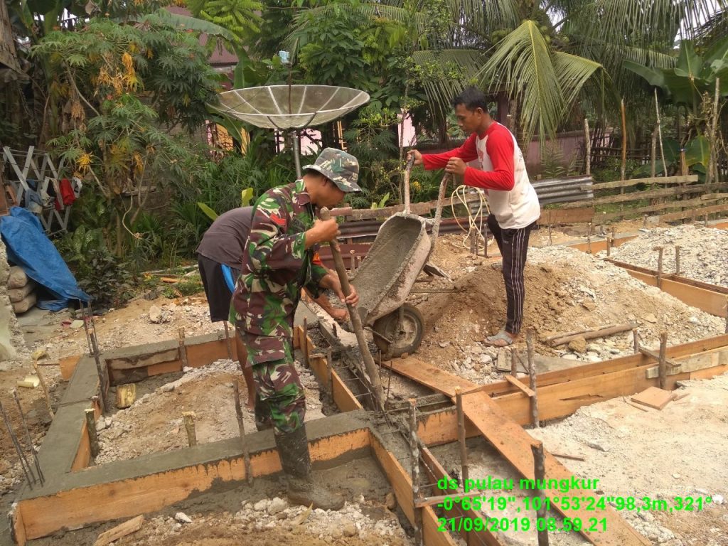 Kuantan Mudik, Indonesia–Dalam rangka meningkatkan kerja sama dan solidaritas yang tinggi, Babinsa Koramil 08/Km Koptu Gusman Herianto membantu warga binaannya dalam membangun rumah layak huni. Rumah itu merupakan milik salah seorang warga binaanya yang berlokasi di di Desa Pulau Mungkur, Kecamatan Gunung Toar, Kabupaten Kuantan Singingi (Kuansing), Provinsi Riau.