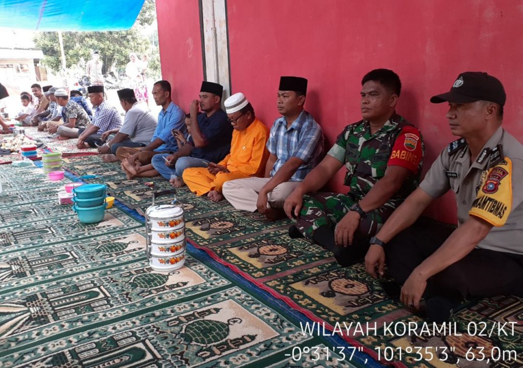 Teluk Kuantan, Indonesia–Danramil 02/KT Kapten Inf Yunasri & Sertu Despi Herdison melaksanakan kegiatan menghadiri acara syukuran penanaman padi atau istilah warga Sebrang Taluk Hilir: “Doa Turun ke Sawah.”