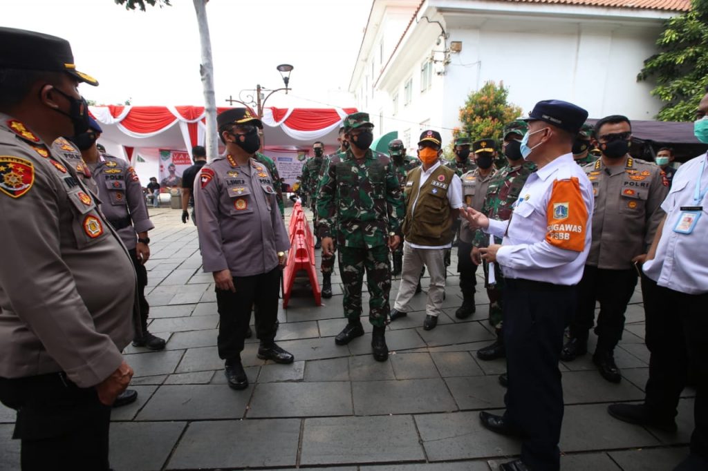 JAKARTA, INDONESIA – Panglima TNI Marsekal Hadi Tjahjanto, Kapolri Jenderal Listyo Sigit Prabowo dan Ketua Umum dan Ketua Umum Pengurus Besar Nahdlatul Utama (PBNU) KH. Said Aqil Siradj melakukan tinjauan langsung ke kegiatan vaksinasi massal di Yayasan Al-Mahbubiyah.