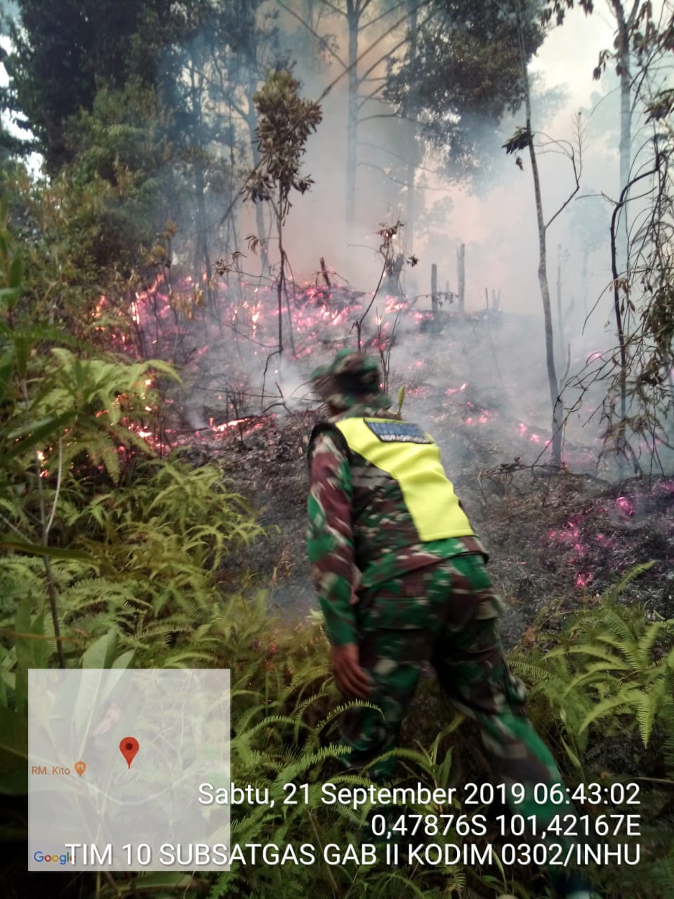Subsatgas Gab–II Tim Kodim 0302 Inhu Koramil 09/Sg Laksanakan Pemadaman Karhutla