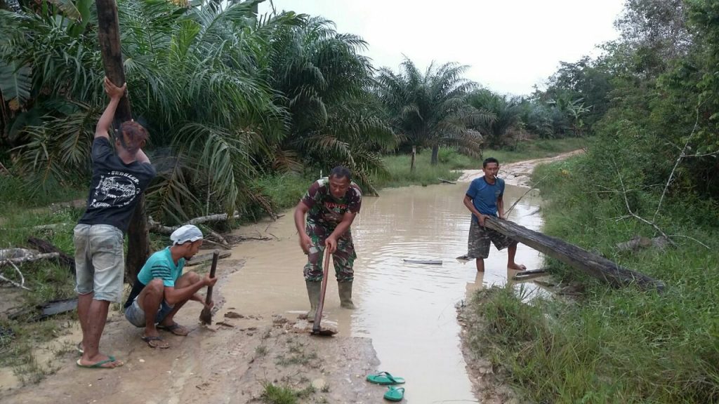 Kuansing, Indonesia – Babinsa ( Bintara Pembina Desa ) Kecamatan Cirenti, Kabupaten Kuantan Singingi (Kuansing) Serda Pirman ikut bergotong royong bersama masyarakat. Anggota Koramil 06/Cerenti Dim 0302/Inhu, ini selalu rutin membaur dengan dan bergotong royong bersama masyarakat.