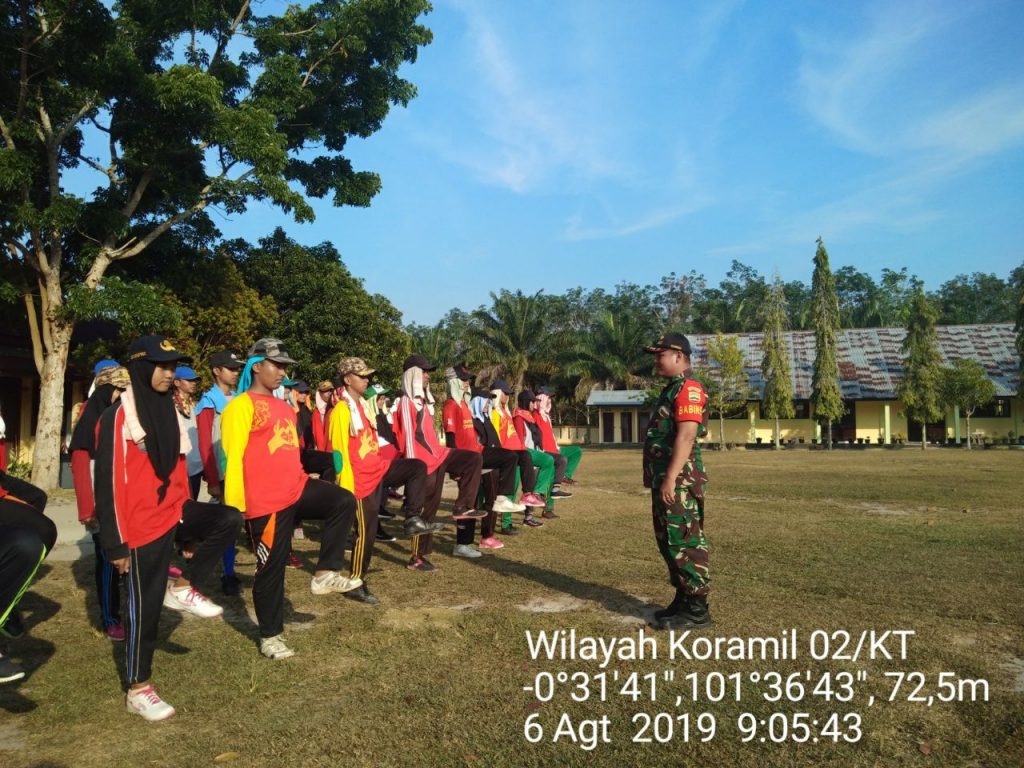 Babinsa Koramil 02/KT Dim 0302/Inhu, k Koptu Desma Dedi, melatih anggota Paskibra.