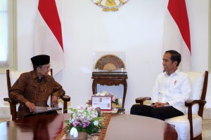 Saat bertemu Presiden ke-3 RI, Prof. Dr. BJ. Habibie, Jokowi didampingi Menteri Sekretaris Negara Pratikno. Pertemuan berlangsung secara tertutup selama sekitar satu jam. humas setkab ri/p-01