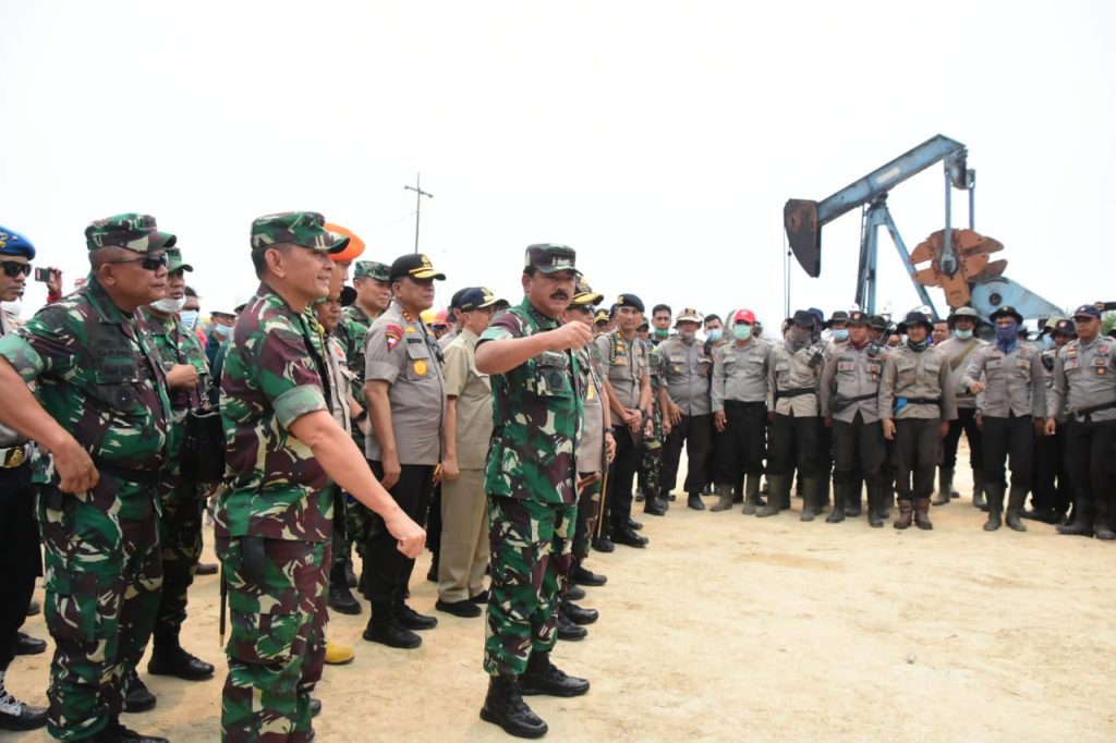 Tiba di lokasi, Panglima TNI langsung disambut oleh pasukan gabungan TNI, Polri dan Manggala Agni serta Badan Penanggulangan Bencana Daerah (BPBD) Riau yang masih melakukan upaya pemadaman di lokasi tersebut. Sejauh ini TNI sudah membantu upaya pemadaman Karhutla dengan menerjunkan pasukan langsung ke titik api. Selain itu, TNI juga telah berupaya menyemaikan natrium klorida (NaCl) untuk hujan buatan dan melakukan pemadaman melalui udara dengan water bombing.